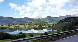 Etnefjorden is a fjord on the border between Vestland and Rogaland counties in Norway.[1] The majority of the fjord lies in the municipality of Etne, but a small part of it also lies in the neighboring municipality of Vindafjord in Rogaland county. The 8.5-kilometre (5.3 mi) long fjord flows from the village of Etnesjøen to the west into the Skånevikfjorden/Hardangerfjorden. The fjord is fed by the Etneelva river which empties into the fjord at the village of Etnesjøen. The European route E134 highway runs along the inner part of the fjord.