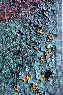 He has also designed the doors installed on the Nativity facade (inaugurated in December 2015 after many years of work), made of bronze[1] and glass, decorated with plants, insects and small animals. He has made four gargoyles to be installed in the towers of the Evangelists, currently under construction. In addition, Sotoo was commissioned to restore the sculptures of the Porta del Rosari, damaged in the Spanish Civil War. He also worked on the design of tubular bells installed in Gaudí thought bell towers of the three facades of the Sagrada Familia.