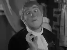 From the 1920s, Petrolini's repertoire was enriched with a series of plays by Italian authors such as Alfredo Testoni, Renato Simoni, Roberto Bracco, Luigi Antonelli, Ugo Ojetti, Salvatore Gotta, Fausto Maria Martini, adapted by Petrolini himself. In 1925, he took his stage adaptation of Luigi Pirandello's Lumie di Sicilia, called Agro de limone.[11] In the 1920s, he also met Elma Criner, who became his companion and later his wife. In 1930, with the advent of sound films, Petrolini returned to the cinema as a protagonist of Nerone by Alessandro Blasetti, and also featuring Criner in the part of Poppea. The film featured some of Petrolini's most famous interpretations: Gastone, Nerone, Pulcinella. The same year he starred in Cortile by Carlo Campogalliani, based on the play of the same name by Fausto Maria Martini. Cortile was released the following year in a double bill with Il Medico per forza, Campogalliania and Petronelli's spoof version of Molière's farce Le Médecin malgré lui.[12] In Scenario's July 1934 issue, Petrolini has 94 close-ups, in a variety of poses, expressions, and emotional interpretations.[13]