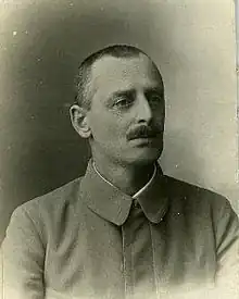 Ettore Vittorio Uicich[1] was born in Pisino, Istria (then under Austrian rule), on 16 July 1870. A trader by profession, Uicich was an ardent irredentist already in his youth. He always strove for the "Italianness" of "his hometown and of all of Istria".[2] In 1908, he founded the Italian cycling club Intrepido in his hometown of Pisino (now Pazin, Croatia).[3] During World War I, in July 1914, he received a letter of drafting by Austria-Hungary. Uicich, however, had already left his family and was moving to Italy. Before leaving Pisino, he put his Italian flag into a box and dug it in an alley as a token of "faith and hope".[4] It was dug up by his friends in October 1916, dug in a safer place, and dug up again and displayed on his house upon the entry of the Bersaglieri in Pisino in November 1918. His flag is now kept in the Museum of the Risorgimento (Modena) of Modena.[4]