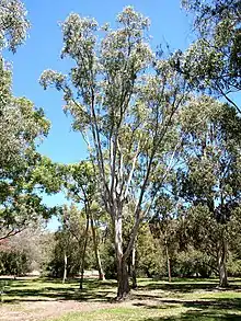 Cabbage gum grows in grassy woodland and forest, often in depressions and on river flats.[3][5]