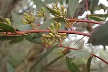 - 1 2 3 Nicolle, Dean; French, Malcolm E. (2012). "A revision of Eucalyptus ser. Falcatae (Myrtaceae) from south-western Australia, including the description of new taxa and comments on the probable origin of E. balanites, E. balanoplex and E. phylacis" (PDF). Nuytsia. 22 (6): 428–430. Retrieved 26 June 2019.