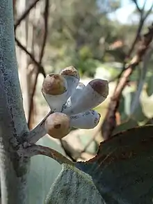 • Eucalyptus georgei subsp. fulgida Brooker & Hopper[8][9] differs from subspecies georgei in having shiny green, non-glaucous leaves and smaller, shorter fruits;