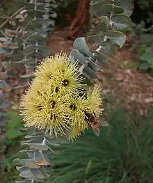 Eucalyptus krueseana leaves and flowers.