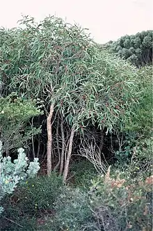 4. 1 2 3 Brooker, M. Ian H.; Hopper, Stephen (1986). "Notes on the informal subgenus Monocalyptus of Eucalyptus (Myrtaceae) and the description of three new upland species from south-west Western Australia". Nuytsia. 5 (3): 346–351. Retrieved 11 September 2019.