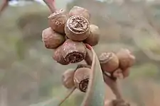 This eucalypt is classified as "not threatened" by the Government of Western Australia Department of Parks and Wildlife.[4]