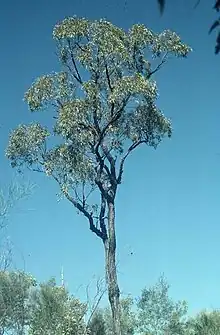 This ironbark is locally abundant on shallow soil over sandstone on ranges and escarpments in the central ranges of Queensland, including the Blackdown Tableland.[2][3]