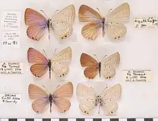 One or more of the preceding sentences incorporates text from this source, which is in the public domain: Bingham, Charles Thomas (1907). Fauna of British India. Butterflies Vol. 2. pp. 415–416. - ↑