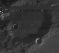 ![]() Lunar Orbiter 4 image (band at top and streaks in upper left are blemishes on original image) | |