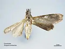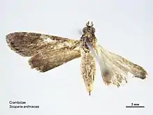 Eudonia anthracias is a moth of the family Crambidae. It was described by Edward Meyrick in 1885 and it is found in Australia.
