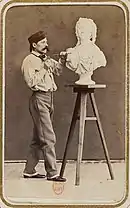 Eugène Cyrille Brunet was a French sculptor, born in Sarcelles in 1828 to André Brunet and Aglaé-Julie Drouet. He died in 1921. Brunet studied under Armand Toussaint at the École des beaux-arts. There he met Édouard Manet and the two made a study trip to Florence in 1857. In October 1861 he married Caroline de Pène,[1] who was painted by Manet about that time.[2] A mustached head and shoulders of the artist himself appears looking to one side in the left background of Manet's La Musique aux Tuileries (1862).[3] In Manet's address book he is recorded as living in Brittany.[4]