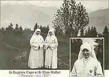 Soon Marie-Eugénie was nominated as superior of the congregation of Mortain in Normandy (October 1924). Afterwards, she was asked to move to a new community in Allex, southern France (September 1925). Following a short pause in Jouy-aux-Arches, Eugénie moved as superior mother of the budding congregation of Montana, Switzerland in August 1926.[1] There, the sisters were operating a sanatorium, "Villa Notre-Dame".