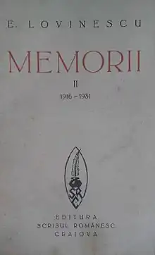Eugen Lovinescu (Romanian: [e.uˈdʒen loviˈnesku]; 31 October 1881 – 16 July 1943) was a Romanian modernist literary historian, literary critic, academic, and novelist, who in 1919 established the Sburătorul literary club. He was the father of Monica Lovinescu, and the uncle of Horia Lovinescu, Vasile Lovinescu, and Anton Holban. He was elected to the Romanian Academy posthumously, in 1991.