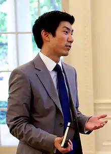 Eugene Kang is an Ann Arbor native who attended Greenhills School before enrolling at the University of Michigan. At Michigan, Kang made a 2005 bid for the Ann Arbor City Council.[2] He later worked on Senator Amy Klobuchar's (D-Minn.) 2006 campaign.[3] During Obama's Presidential campaign he worked in the political division.[4] A second-generation Korean American,[5][6] he was also a part of the Asian Americans and Pacific Islanders National Leadership Council.