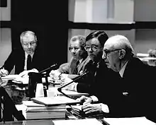 Stewart was often requested to provide testimony before various government agencies, specifically on international trade and other matters. For example, Stewart testified before the United States Senate Committee on Banking, Housing, and Urban Affairs in 1968 regarding proposed housing legislation.[11] Senator John Sparkman, chairman of the subcommittee, who presided over the hearing, described it as such: “[T]oday we start hearings on legislation proposing different measures, different proposals on housing and urban affairs for 1968... The legislative proposals we have before us encompass the whole range of housing and urban development programs.”[11] Stewart’s testimony had the purpose of extending Federal housing assistance programs to benefit residents of Sursum Corda. He stated that “My purpose is .... saying that the programs that are now on the books, which programs are extended in the pending legislation and indeed further modified, the 221(d)(3) program, the rent supplement program, and the public housing leasing programs, are sound programs that can be combined by people with a will to create worthwhile housing for low income large families.”[11]