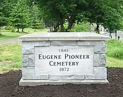 ![]() Eugene Pioneer Cemetery sign | |
