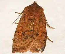 Eupsilia tristigmata, known generally as the three-spotted sallow or brown fruitworm, is a species of cutworm or dart moth in the family Noctuidae. It is found in North America.[1][2][3]