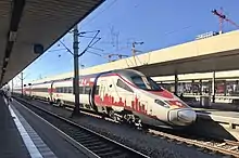 SBB's Alstom ETR 610 ("Astoro") are used: SBB RABe 503 022 was given a trinational design for the inauguration of the first ECE connection and was given the name Johann Wolfgang von Goethe at Basel SBB station on November 17, 2017.[6] SBB's Alstom ETR 610 trains with tilting technology are also in operation on the route between Munich and Zurich.[7]