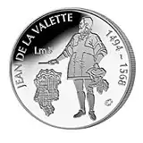 | In 2007, the Central Bank of Malta issued the "La Valette" commemorative coin as the last silver coin denominated in Maltese lira. The obverse of the coins shows the Emblem of Malta with the year of issue 2007. The reverse depicts Grandmaster La Valette with the dates of his birth and death (1494–1568). These coins are being issued under the Europa Programme 2007 with the theme "European Realisation". The "Europa Star", the official logo of this programme, is also shown on the reverse. This coin was designed by Maltese engraver Mr Noel Galea Bason and has been minted at the Royal Dutch Mint. | ||||