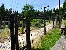 In 1970, satellite pictures showed a dark green belt of old-growth forest on the Finnish-Russian border.[2] In the early 1980s, biologists discovered that the inner German border zone between Bavaria in the west and Thuringia in the east was a refuge for several rare bird species which had disappeared from the intensely used areas covering most of Central Europe.[3] The reasoning behind this observation was that negative human impact on the environment is smaller in such border zones which are commonly closed to public access and thus wildlife is minimally impacted by human activities.