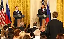 Dmitry Medvedev with Barack Obama at a joint press conference in Washington, 2010