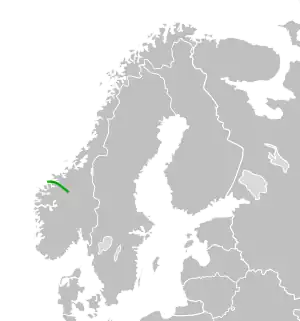 European route E 136 is a European highway located entirely in Møre og Romsdal and Innlandet counties in Norway. The highway begins in the town of Ålesund in Møre og Romsdal county on the west coast of Norway, and it goes east up through the Romsdalen valley, crossing into the upper Gudbrandsdalen Valley to end at the village of Dombås in Dovre Municipality in Innlandet county.[1]