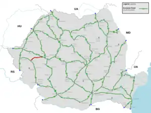 European route E 673 is a road part of the International E-road network. It begins in Lugoj and ends in Deva. It is 103 km (64 mi) long.