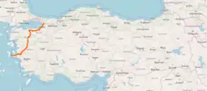European route E 881 is a European B class road in Turkey, connecting the cities Kocaeli and İzmir.