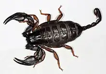 Euscorpius italicus is a scorpion belonging to the genus of small wood-scorpions. It is the largest species in the genus, with adults reaching lengths up to 50 mm.[1] Its size can thus be used as a heuristic for determination.