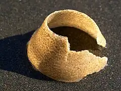Egg capsules are laid in a spirally wound collar of jelly embedded with sand grains. The remains of these may be found on the beach.[2]