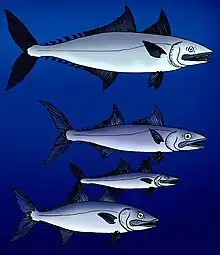 In life, the Euzaphlegidae would have borne a superficial resemblance to mackerels or wahoo, leading some researchers to place them within the Scombridae or Cybiidae, respectively.[3] However, X-ray analysis of the bone structure strongly suggests a relationship with the snake-mackerels, with some experts placing them within the Gempylidae.[4]