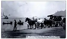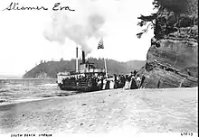 For travellers going to or coming from Coos Bay, Eva made a run from Gardiner to a beach near Winchester Bay, close to the mouth of the Umpqua river on the south side, where another stage route ran south towards Coos Bay along the beach.[8] It was reportedly either 17.5[10] or 20 miles on the water from Scottsburg to Gardiner. It was a further nine miles from Gardiner to the south beach.[3]