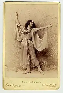 Eva Tanguay (August 1, 1878 – January 11, 1947) was a Canadian singer and entertainer who billed herself as "the girl who made vaudeville famous". She was known as "The Queen of Vaudeville" during the height of her popularity from the early 1900s until the early 1920s. Tanguay also appeared in films, and was the first performer to achieve national mass-media celebrity, with publicists and newspapers covering her tours from coast-to-coast, out-earning the likes of contemporaries Enrico Caruso and Harry Houdini at one time, and being described by Edward Bernays, "the father of public relations", as "our first symbol of emergence from the Victorian age."[2]