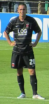 Horwood made his Carlisle United debut on 2 February 2008, where he started the whole game, in a 2–1 win over Walsall.[34] Since making his Carlisle United debut, Horwood established himself in the first team for the rest of the season.[35] He also helped the side reach the play–offs, but was unsuccessful after losing to Leeds United 4–3 on aggregate.[36] At the end of the 2007–08 season, Horwood had made 22 appearances in all competitions. Reflecting on his performance, Manager John Ward said: "Young Evan Horwood has come in and done a great job."[37]