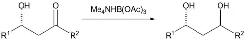 - ↑ Evans, David; Chapman, K.; Carreira, E. (1988). "Directed reduction of β-hydroxy ketones employing tetramethylammonium triacetoxyborohydride". Journal of the American Chemical Society. 110 (11): 3560–3578. doi:10.1021/ja00219a035.