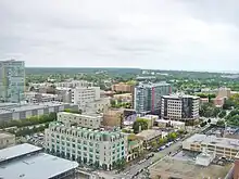 ![]() View of downtown, at Sherman Avenue and Davis Street, looking south/south-east toward Chicago | |