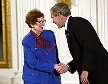 Witkin was elected as a member of the National Academy of Sciences in 1977. At the time she was one of the few women elected to the Academy. She also became a Fellow of the American Academy of Arts and Sciences (1978),[29] a Fellow of the American Association for the Advancement of Science (1980); and a Fellow of the American Academy of Microbiology. She was awarded the 2000 Thomas Hunt Morgan Medal and her contributions to science have been recognized by the United States government as she was awarded the National Medal of Science in 2002:[30]