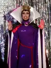As in the film, the Queen character is featured in 1979 Snow White and the Seven Dwarfs musical version, played by Anne Francine.[102] In the Disney on Ice reenactment of the movie in 1986–1987,[103] and then in 1994–1997 and again in 2000–2001, she was voiced by Louise Chamis and played by various skaters beginning with Melanie Scott in 1986–1987,[104][105] and including Elena Koteneva, who was substituted by Davina Lee-Gooding in 1995.[106] Francine also played her in the 1980 stage play and television program Snow White Live[107] and Chamis voiced her in Disneyland's Snow White – An Enchanting Musical in 2004 and 2006. The Evil Queen was further featured in Disney Live's Three Classic Fairy Tales in the section based on the film.[108][109]