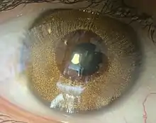 - ↑ El Chehab, Hussam; Gatinel, Damien; Baudouin, Christophe; Muraine, Marc; Hoffart, Louis; Rozot, Pascal; Mehanna, Chadi; Bonnet, Clémence; Nordmann, Jean-Philippe; Santiago, Pierre-Yves; Burillon, Carole; Baillif, Stéphanie; Pisella, Pierre Jean; Weber, Michel; Robinet-Perrin, Antoine (January 2020). "Complications of cosmetic iris implants: French series of 87 eyes". Journal of Cataract and Refractive Surgery. 46 (1): 34–39. doi:10.1097/j.jcrs.0000000000000032. ISSN 1873-4502. PMID 32050230.