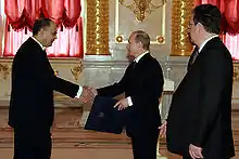 Saad presenting his credentials to Vladimir Putin in April 2006.