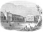 Felix Callet was admitted to the School of Fine Arts in 1809. A pupil of his father and Pierre-Jules Delespine, he won the Grande médaille d'émulation in 1818 and achieved first class in 1819. He finished second in the Prix de Rome in 1818 with the topic: "a public promenade" before winning the Grand Prix the following year with his subject "a cemetery", tied with Jean-Baptiste Lesueur. Resident at the Villa Medici, his time in Rome included a project for reconstruction of the Forum of Pompeii in 1822. In collaboration with Lesueur, he published a book entitled Architecture italienne, ou palais, maisons et autres édifices de l'Italie moderne,[2] of which some plates were exhibited at the Salon of 1827.[3]