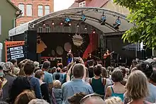 Wewi is 32–33 years old and was raised in San Martín de los Andes.[19] She is the younger sister of Toti and the newest member of Fémina. Self described as a percussionist, Wewi plays the guitar and the Bolivian ronroco.[8] She is also a visual artist and illustrator, who, at first, moved to Buenos Aires to pursue a career in the arts.[19][21] Outside of Fémina, Wewi formed Weste, an indie folk band composed of herself and Uruguayan musician Igna Pérez.[23] They released their debut album Visceras featuring a mixture of folk-rap and indie pop.[21][22]