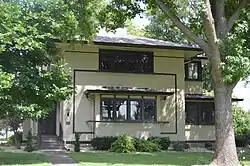 The F. D. Thomas House is a historic house located at 321 North Ohio Street in Camp Point, Adams County, Illinois. The house was built in 1917 for F. D. Thomas, a successful local banker. Architect Ernest M. Wood, a prominent architect in the Quincy area, designed the Prairie School house. Wood was influenced by the work of Frank Lloyd Wright, and he was primarily responsible for bringing the Prairie School to western Illinois. The house's key Prairie School features include a stucco exterior with wooden trim, casement windows, a low hip roof, and an open interior layout.[2]