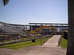 FIU Community Stadium was the first dedicated sports facility at the school, replacing Tamiami Field. Construction officially began on July 24, 1994, and the facility opened on September 24, 1995, as a 7,500-seat football and track stadium. It was built as a joint venture between FIU, Miami-Dade County Public Schools, Miami-Dade Parks, and the Miami-Dade County Youth Fair.[1] In anticipation of the inaugural FIU Golden Panthers football[Note 1] season in fall 2002, the university placed movable bleachers around the stadium's all-weather running track in 2001, which increased the stadium's capacity to 17,000 seats.