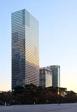 The FKI Tower also known by its full name Federation of Korean Industries Head Office Building is a skyscraper on Yeouido island in Seoul, South Korea. It was designed by the American architectural firm Adrian Smith + Gordon Gill Architecture. Construction started in 2010 and was completed in 2014. At 245 m (804 ft) high, it is amongst the tallest buildings in South Korea and the 5th tallest building in Seoul. The building was awarded the 2015 Building of the Year award by American-architects.com[2]