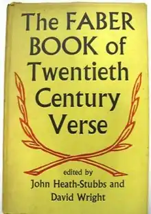 The Faber Book of Twentieth Century Verse: An Anthology of Verse in Britain 1900-1950 was a poetry anthology edited by John Heath-Stubbs and David Wright, and first published in 1953 by Faber and Faber.[1] A selection in self-conscious contrast to the Faber Book of Modern Verse, it did not attempt to cover American poetry (beyond Eliot and Pound). It has been through numerous further editions. It was last issued as a hardback in St. Clair Shores, Michigan by Somerset Publishers Inc. in 1988 with ISBN 0-403-07212-3.