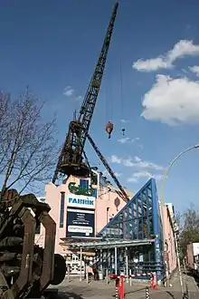 It occupies a former machine parts factory in Ottensen, in the Altona district. The building dates from the Gründerzeit (around 1840),[1] and consists of a large, nave-like central hall with wooden girders, overlooked by running galleries on the two upper floors. An old crane still hangs over the entrance as a memorial to the building's industrial past.