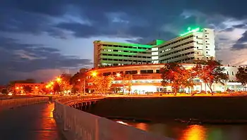 The Faculty of Medicine, Naresuan University (Thai: คณะแพทยศาสตร์ มหาวิทยาลัยนเรศวร) is a medical school located in Phitsanulok, Thailand. The first 10 years of establishment was designed based on the cost-effective principle: the Faculty of Medicine responds for academy in pre-clinical years and the Ministry of Public Health hospitals conduct the academic instruction during the clinical years. Thereafter, the Faculty of Medicine will build and develop its own teaching hospital. The faculty's primary teaching hospital is Naresuan University Hospital with six medical education centers cooperation.