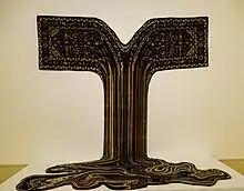 While Ahmed has created artworks in multiple media, including sculpture, video, and installation, he is best known for his surrealist sculptural textiles, which apply optical illusions in the form of often psychedelic visual manipulations (including warping, glitching, melting, pixelating, and unraveling) to traditional Islamic rugs.[6] The textiles are manufactured by a group of skilled weavers who follow Ahmed's designs paying strict attention to traditional Azerbaijani weaving techniques.[7][8]