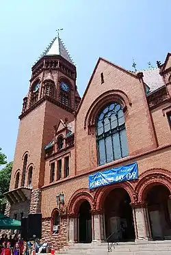 Fairhaven Town Hall is the town hall of Fairhaven, Massachusetts. It is located at 40 Center Street, between Walnut and William Streets, across Center Street from the Millicent Library. The brick and stone High Victorian Gothic hall was designed by Charles Brigham and built in 1892. It was given to the town by Henry Huttleston Rogers, who also made other significant contributions to the town, including the library. The building's granite trim elements were quarried in St. George, New Brunswick and Red Beach, Maine.[2]